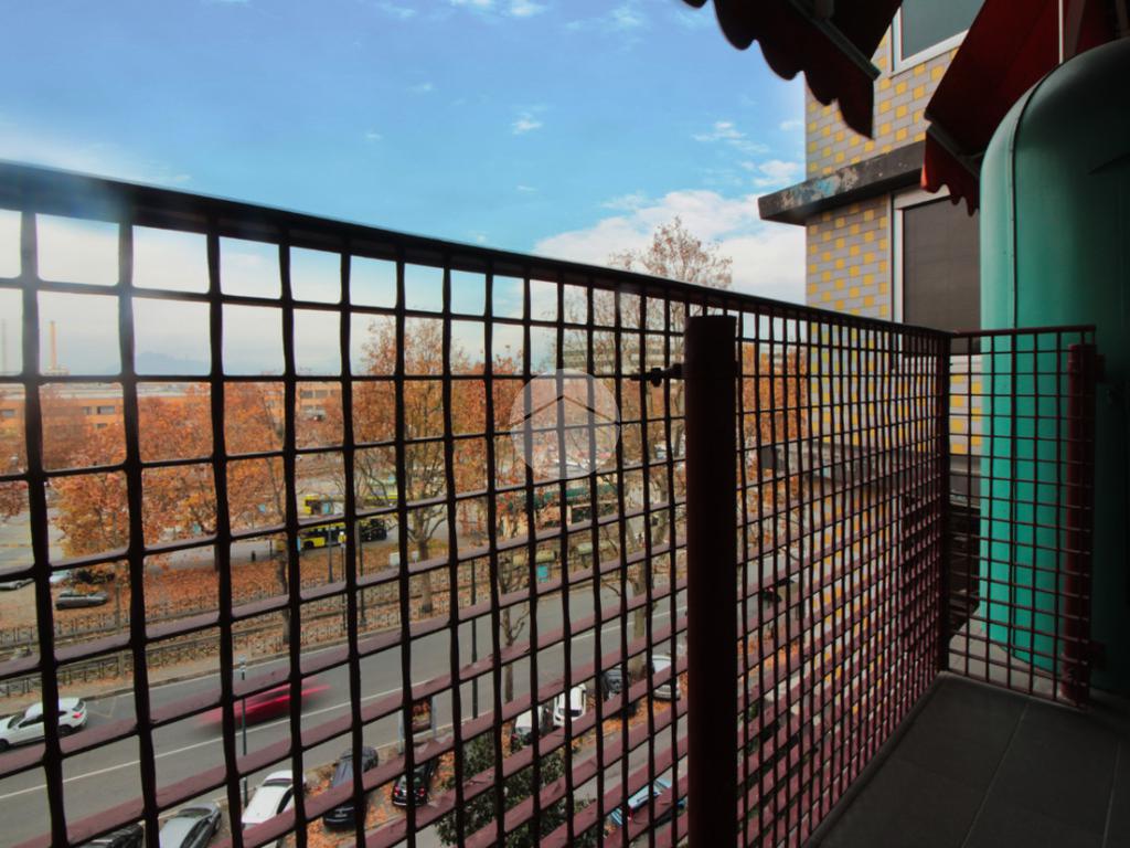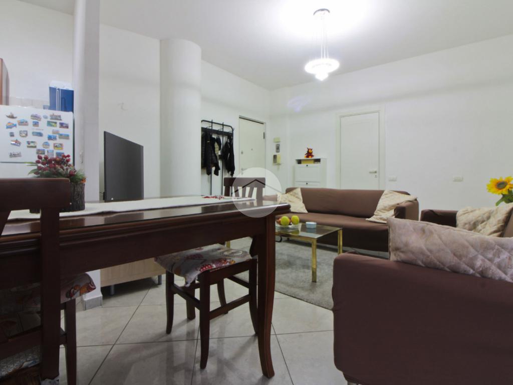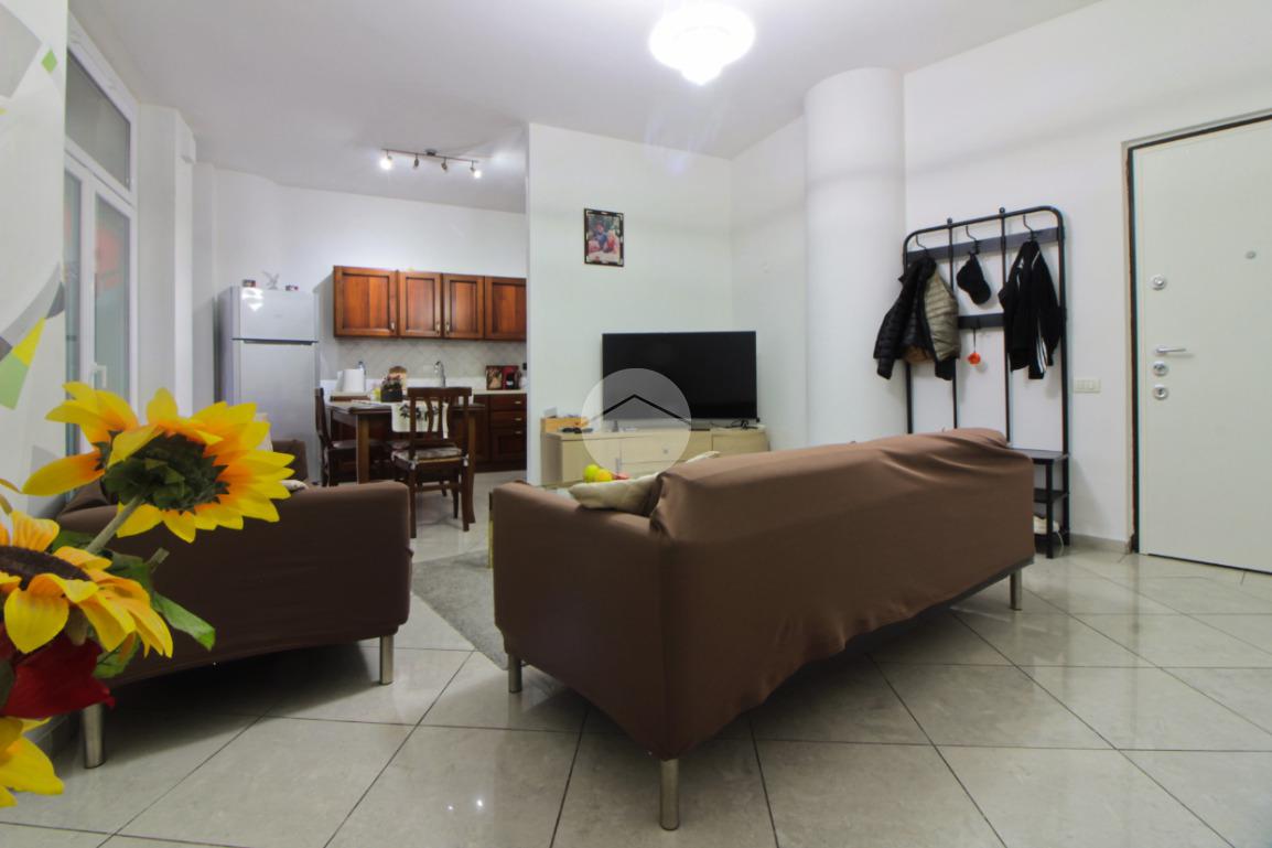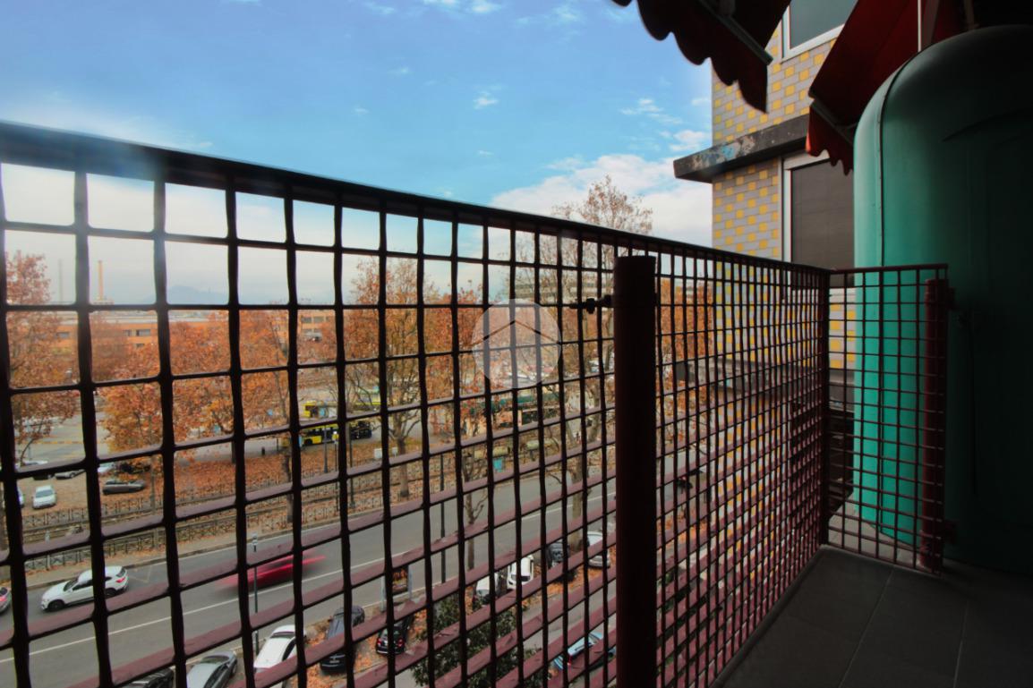 L'appartamento si trova al quinto piano ed è composto da ingresso living su un'ampia zona giorno, cucinotto, due camere e bagno. Sono presenti due balconi, uno con uscita dalla zona giorno e uno dalla camera.
