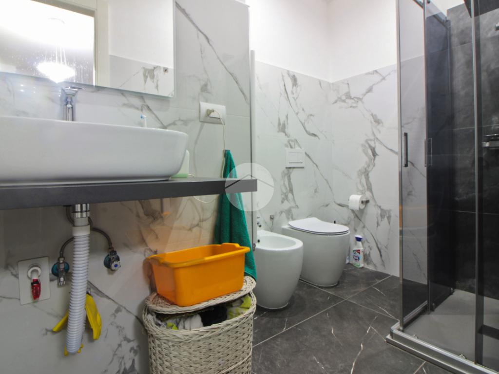 Il bagno è stato ristrutturato completamente nel 2023 ed è dotato di ventola di areazione con sfogo esterno. Gli infissi sono nuovi in triplo vetro.