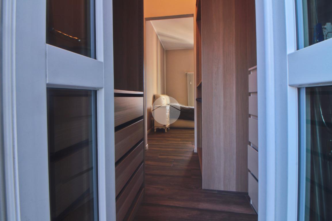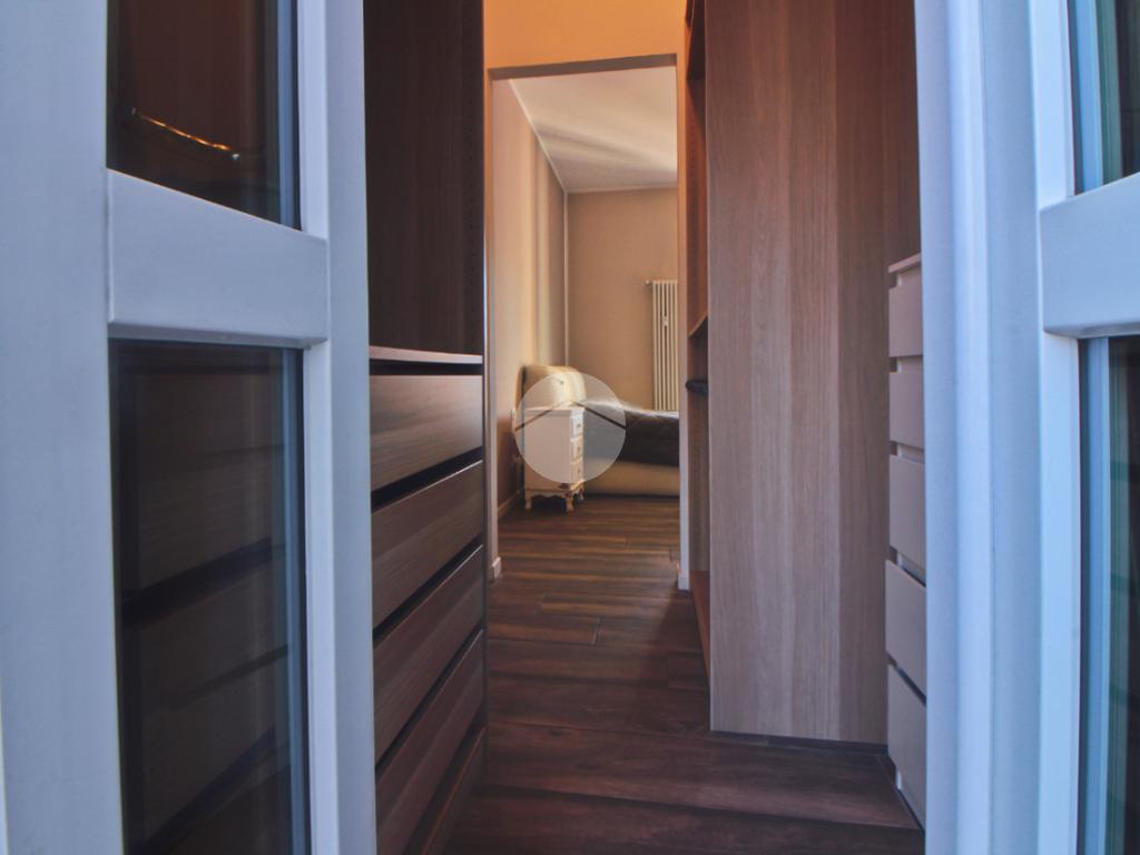 La camera da letto è spaziosa e completata da una pratica ed elegante cabina armadi.