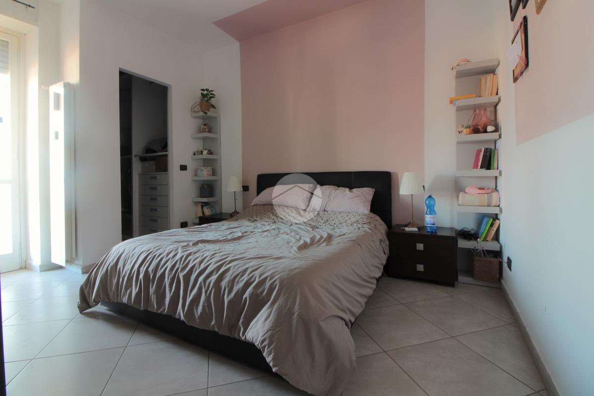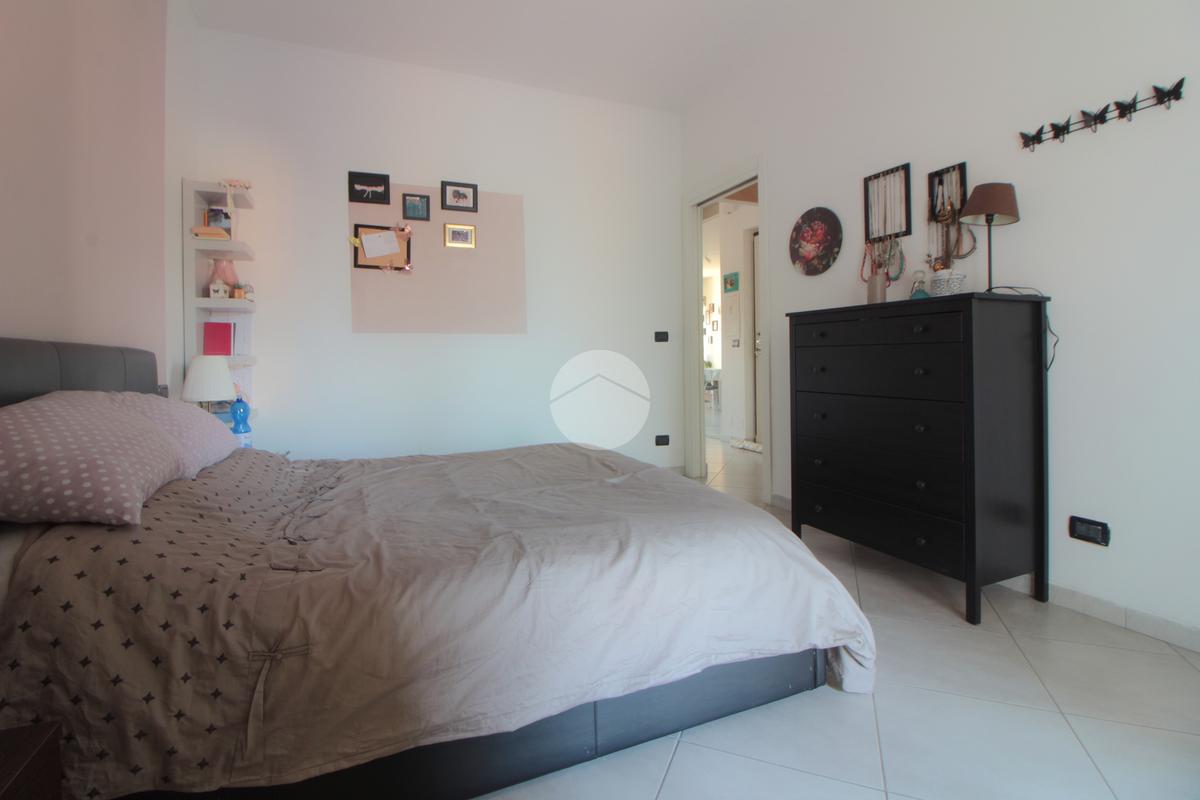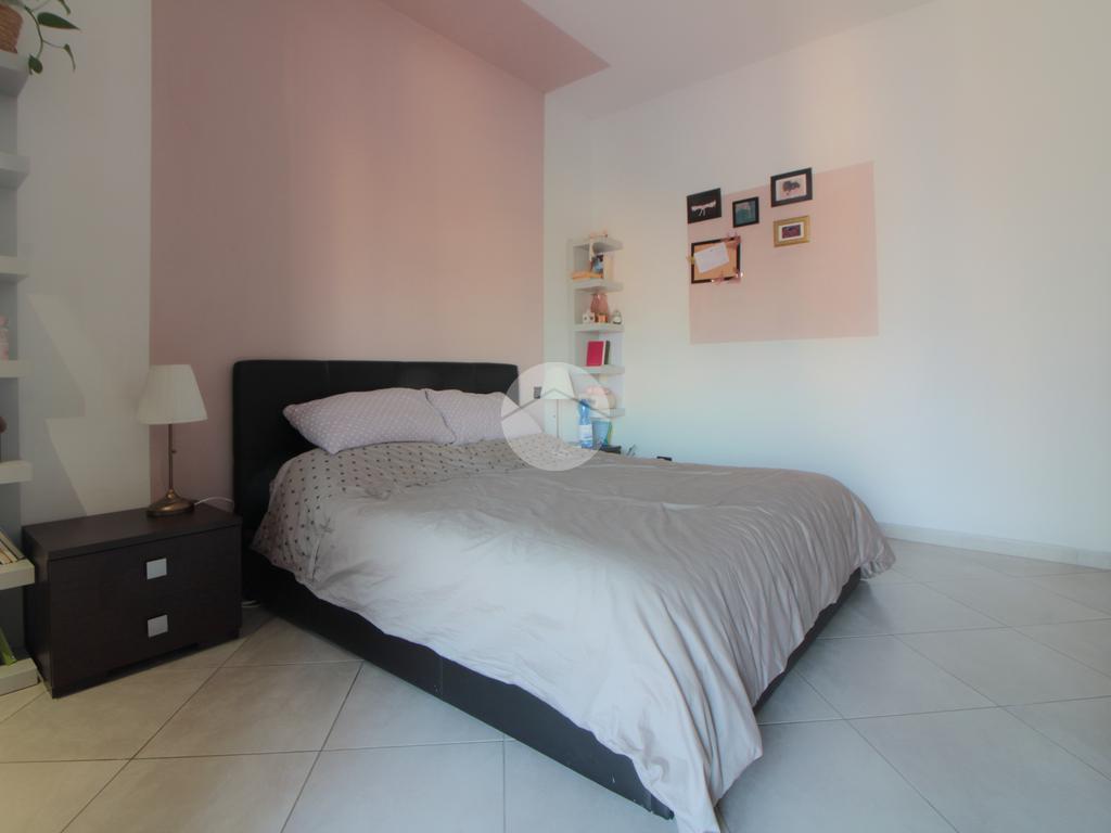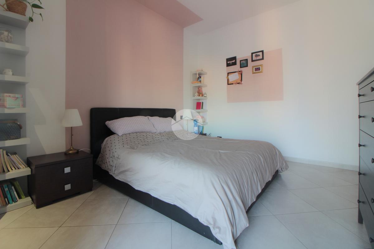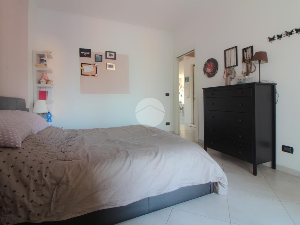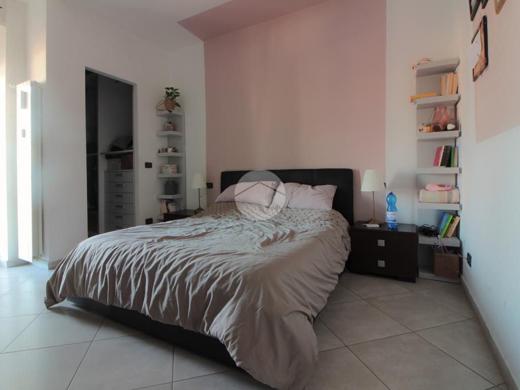 Un pratico disimpegno separa la zona notte dove si trova la camera da letto, ben squadrata e dotata di una comoda cabina armadio. Anche la camera da letto gode di uscita sul balcone, quest'ultimo con affaccio sul lato cortile, esposto ad est e illuminato al mattino, con vista sulla collina. Nel balcone si trovano gli attacchi della lavatrice e una tenda/veranda in PVC.