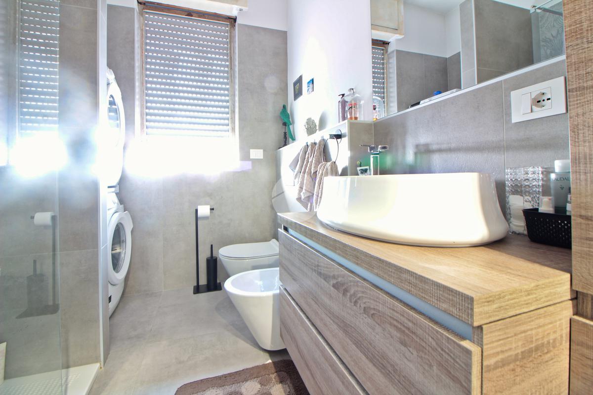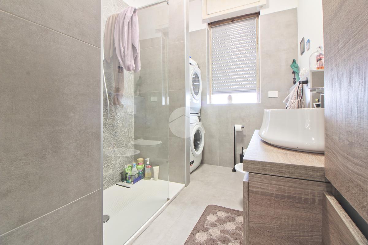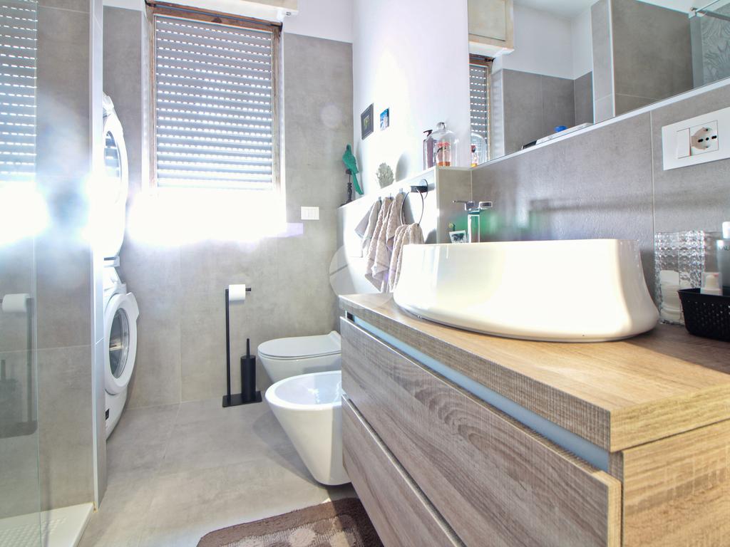 Il bagno principale è dotato di box doccia e servizi completi, il bagno secondario di lavabo e sanitario.